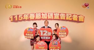 加碼迎金春 115年春節加碼總金額12億元創新高 「大樂透」加碼480組100萬元及800組10萬元大、小紅包 「今彩539」頭獎加碼至1,000萬元 「賓果賓果」獎金加碼