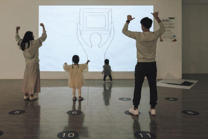 ▲在「舞動畫布」中,讓身體成為作畫的一部分,使筆觸隨著節奏自由延伸,完成你的舞動畫作!